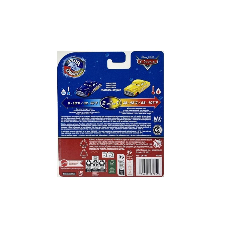 Bazate pe personajele preferate din filmele Disney și Pixar Cars, aceste vehicule la scara 1:55 își schimbă culoarea atunci când sunt scufundate în apă!