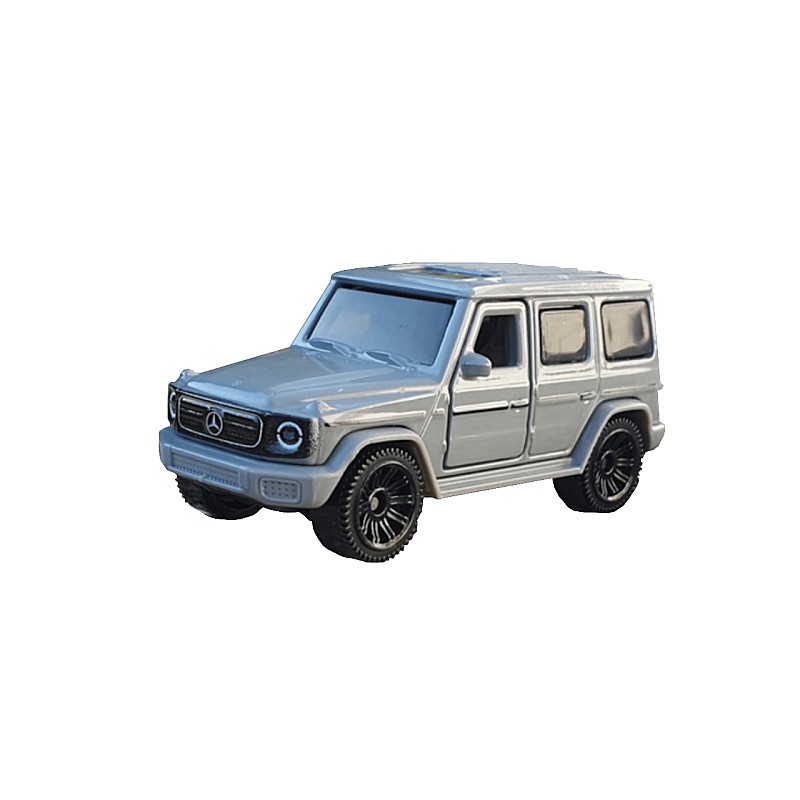 Reprezentare fidelă a Mercedes-Benz G 580 din 2024, cu elemente specifice, inclusiv logo-ul și detalii de design.