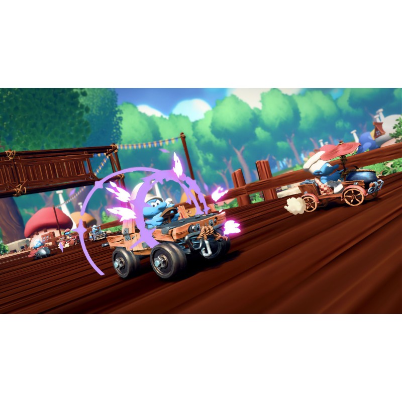 - Folosește-ți puterea specială unică pentru a scăpa de un adversar prea smurfy pe pistă!