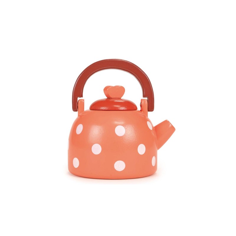 Conceput cu gândul la copiii mici, acest ceainic din lemn are un model drăguț și colorat cu buline care cu siguranță va captiva și va inspira ore întregi de joacă creativă.