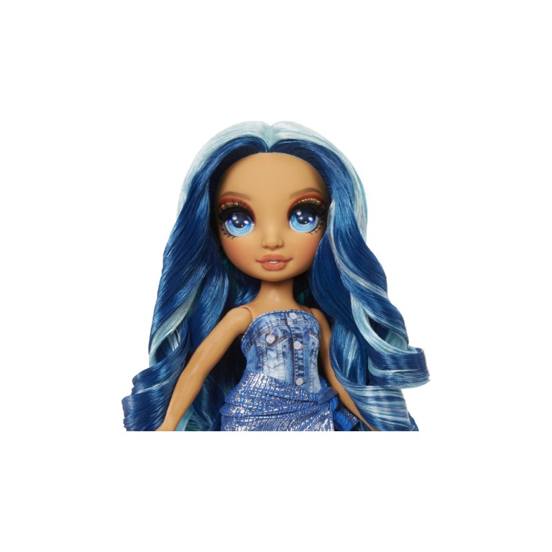 Skyler este îmbrăcată în albastru din cap până în picioare si prezinta un par frumos albastru lung și ondulat, gene lungi și ochi de sticlă.