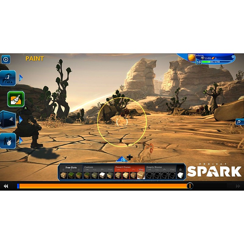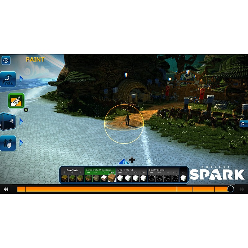 Scufundă-te în imaginația colectivă a comunității și începe să te joci. Dacă visați să vă creați propriile jocuri și vă place să vă construiți propriile povești, "Project Spark" oferă un motor de creație puternic care deblochează construirea de lumi prin instrumente intuitive de sculptură pentru a modela și picta o lume nouă, precum și un limbaj de programare vizuală.