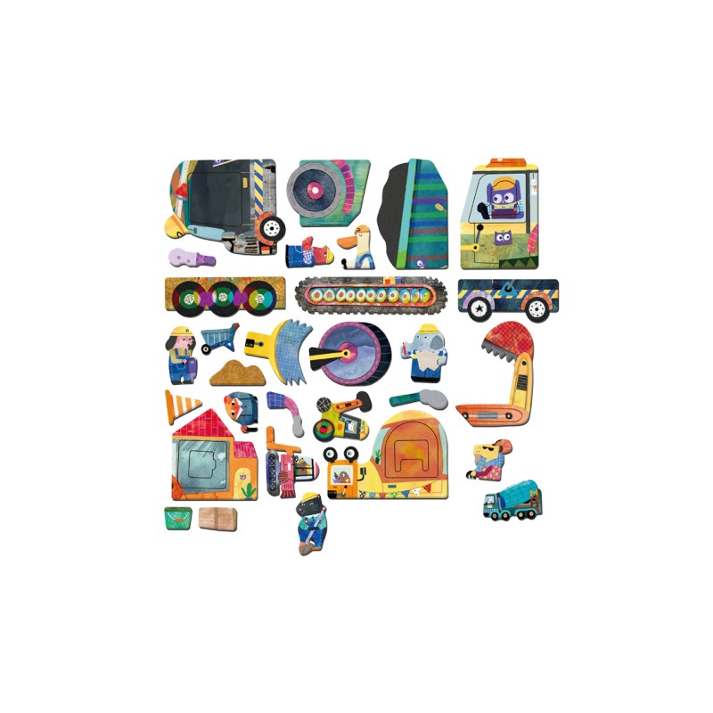 Aceasta integrează diferite camioane cu piese magnetice rafinate pentru a ajuta la dezvoltarea imaginației, a concentrării și a coordonării mână-ochi.
