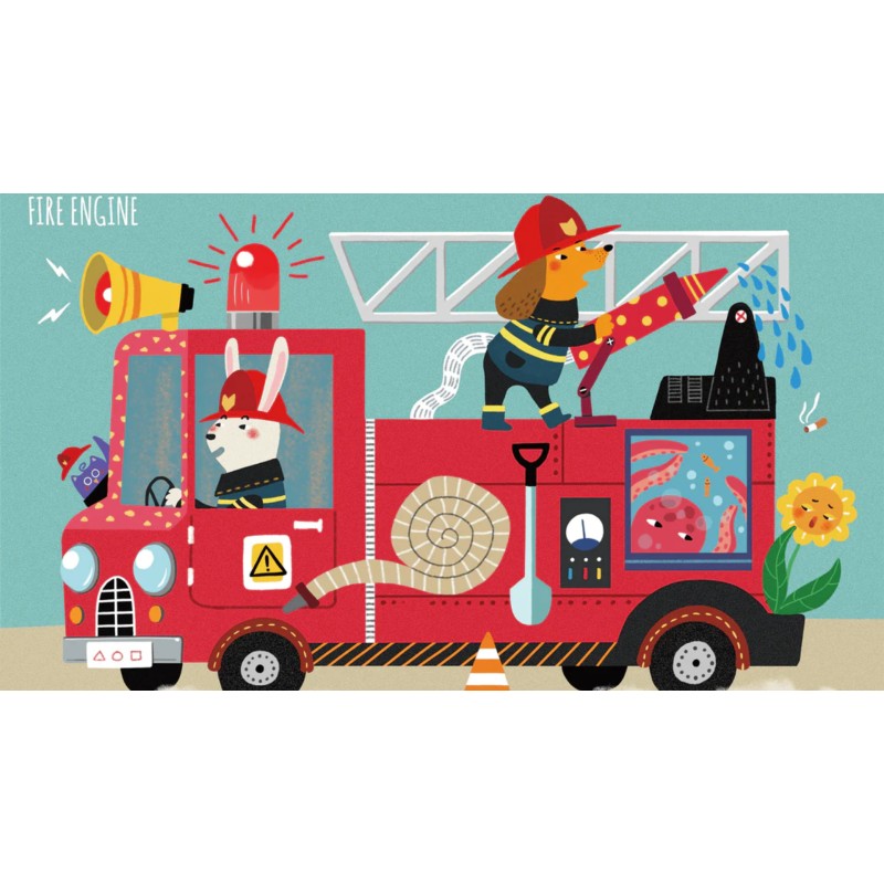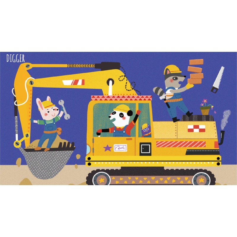 Micuții vor adora aceste patru puzzle-uri frumos ilustrate cu vehiculele lor preferate, de la un excavator la o mașină de pompieri în misiune de salvare.