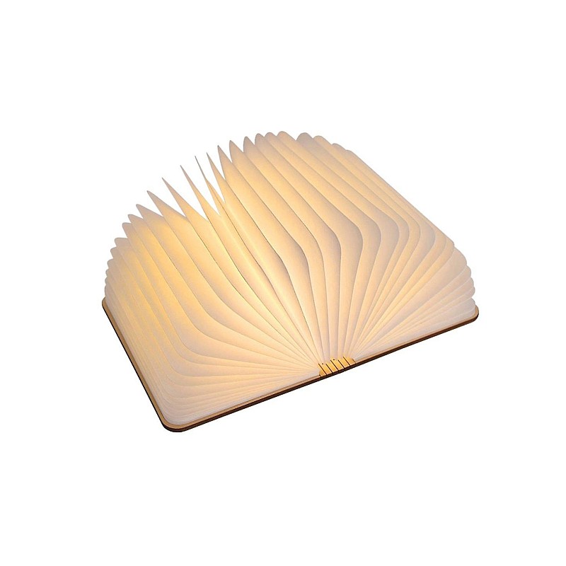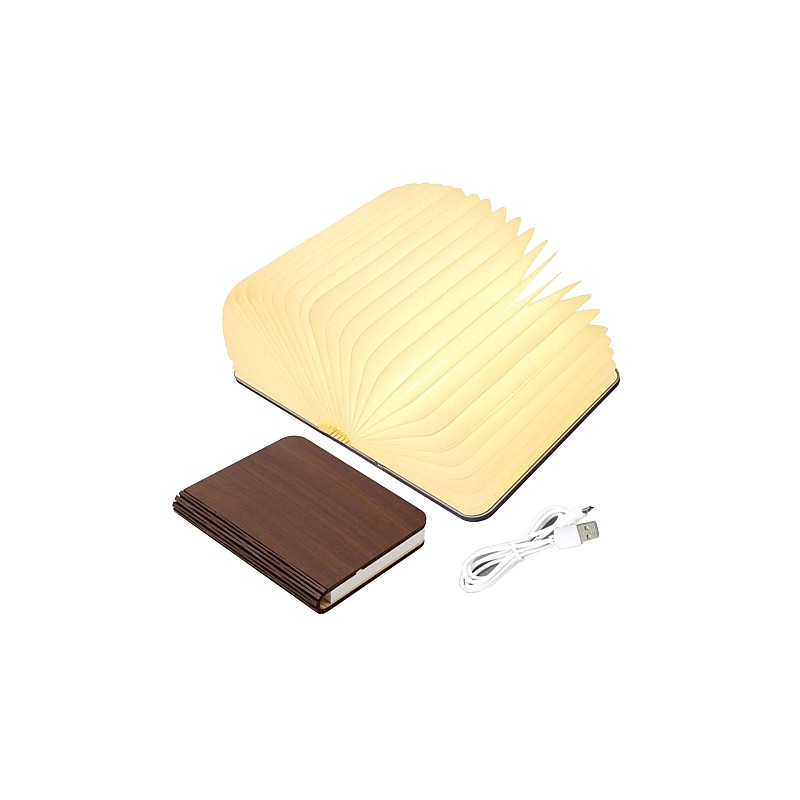 Această carte cu o copertă din lemn poate fi folosită ca o lampă sau depozitată pe un raft de cărți. Cartea emite lumină albă caldă si este reincarcabila prin USB.
