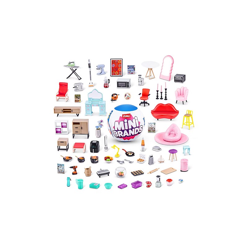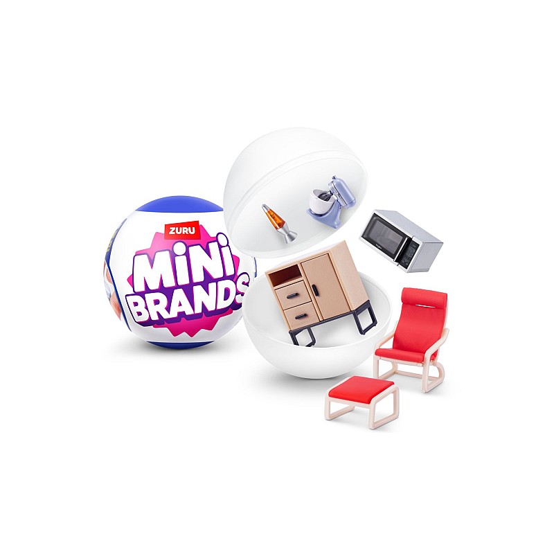 Mingea surpriză Zuru Mini Brands Home. Când deschizi mingea vei găsi pungi cu cinci mici surprize sub formă de obiecte de uz casnic/decorative în format mini.