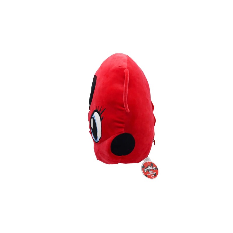 Cu o dimensiune generoasă de 40 cm, perna îl înfățișează pe Kwami-ul Tikki, cel care o ghidează pe Marinette în transformarea ei în Ladybug.