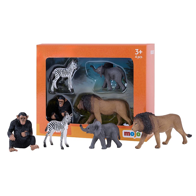 Setul de jucarii Mojo vine într-o cutie frumoasă cu 4 animale din savana africană.