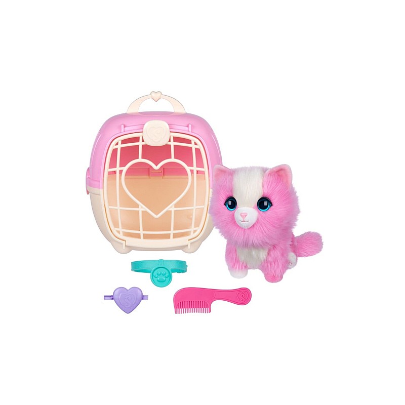 Include un animal misterios și ciufulit într-un ambalaj roz. Înmuiește și periază pentru a dezvălui un cățeluș sau o pisicuță ascunsă.