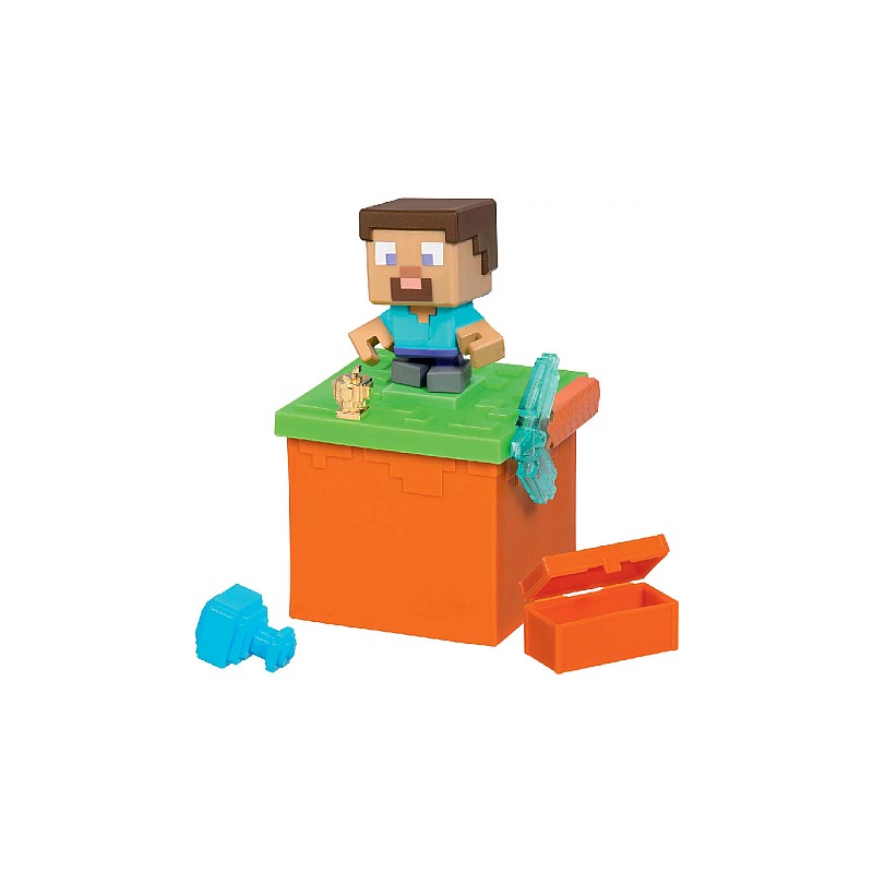 Pachetul conține: 1 cub de spart, 1 figurină de asamblat, 1 târnăcop de săpat, 1 componentă nouă (nisip sau lavă), 1 trusă de crafting, 1 comoară și 1 hartă/ghid de colecție.