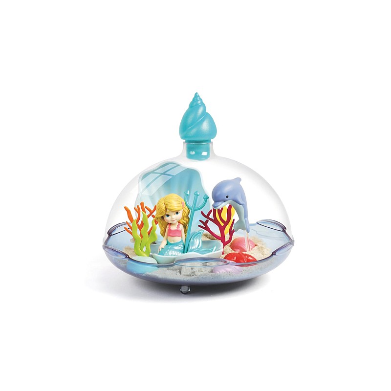 Conține: 1 x bază de sticlă de prezentare, capac și dop, 1 x figurină 1 x cochilie de sirenă, 1 x figurină de căluț de mare și suport, 1 x trident, 4 x matrițe de nisip (diverse modele) 4 x alge marine și 1 x sac de nisip magic Coral.