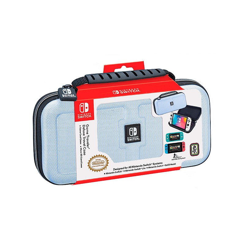 Carcasa elegantă din nylon balistic albastru vă protejează consola Nintendo Switch OLED sau consola Switch, făcându-l mai portabil și mai ușor de călătorit.
