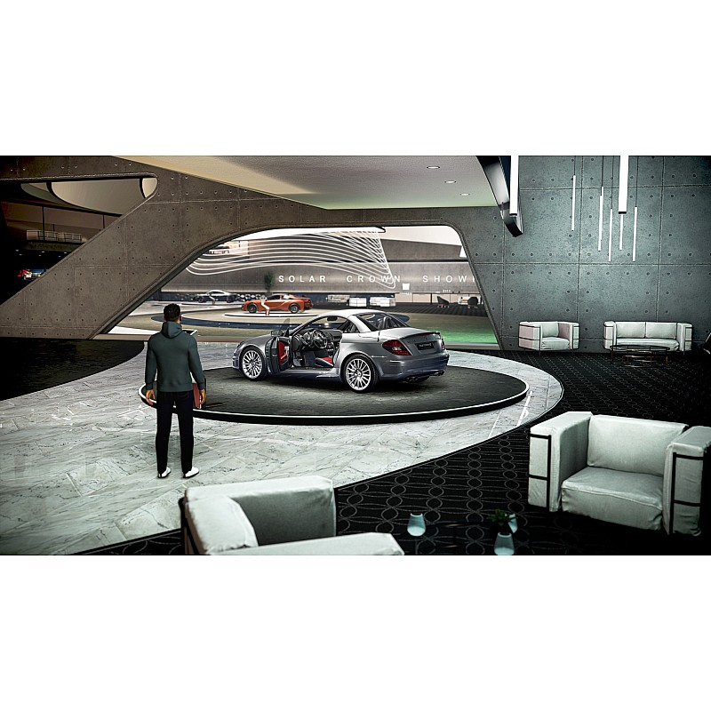 Testează și apoi cumpără mașini direct de la dealeri, personalizează-le în ateliere și expune-le în garajul apartamentului tău din hotelul Solar.