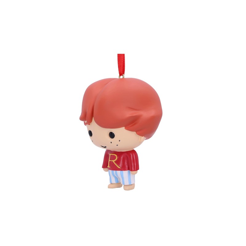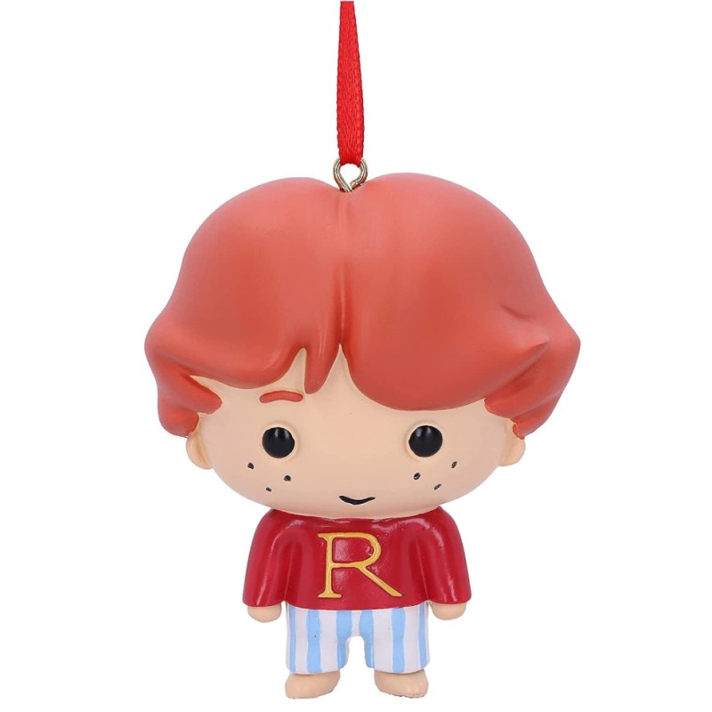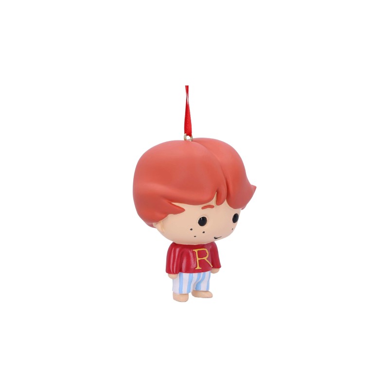 Aici avem un Ron Weasley drăguț în puloverul său "R" și pantaloni de pijama cu dungi, imortalizat în rășină și gata să fie atârnat în casa ta.
