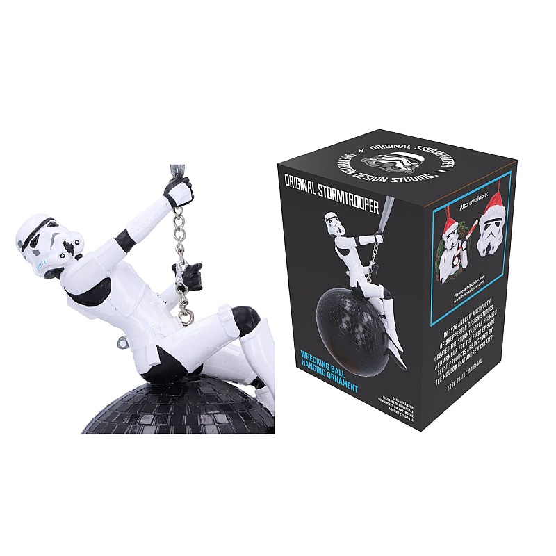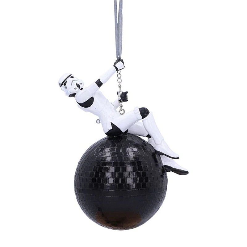 Aici putem vedea un Stormtrooper răutăcios agățat de un lanț, legănându-se nesăbuit pe discoteca lor ca o minge de demolat, gata să facă ravagii.