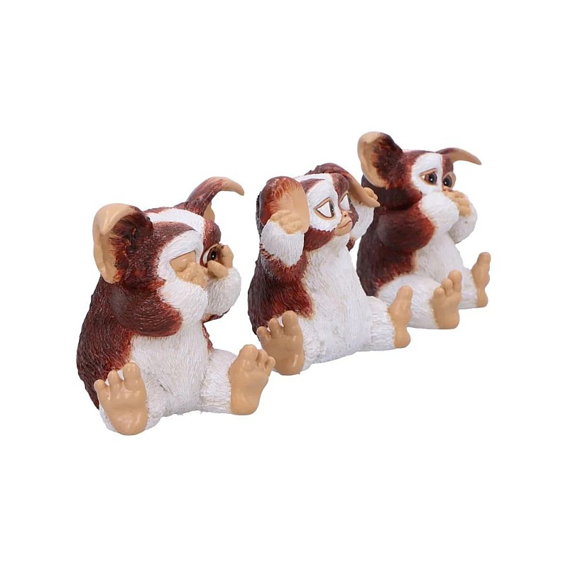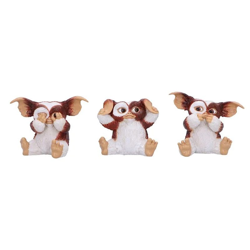 Vă prezentăm Three Wise Gizmo, un set încântător de figurine din rășină care captează esența culturii pop a anilor '80 cu o întorsătură capricioasă.