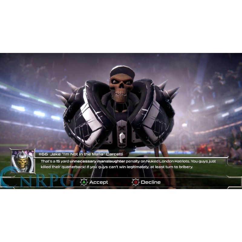 Mutant Football Leagu este distracția sângeroasă, next-gen, succesorul jocurilor de fotbal american în stil arcade, inspirându-se din jocuri sportive exagerate precum NFL Blitz și clasicul Sega Genesis, Mutant League Football.