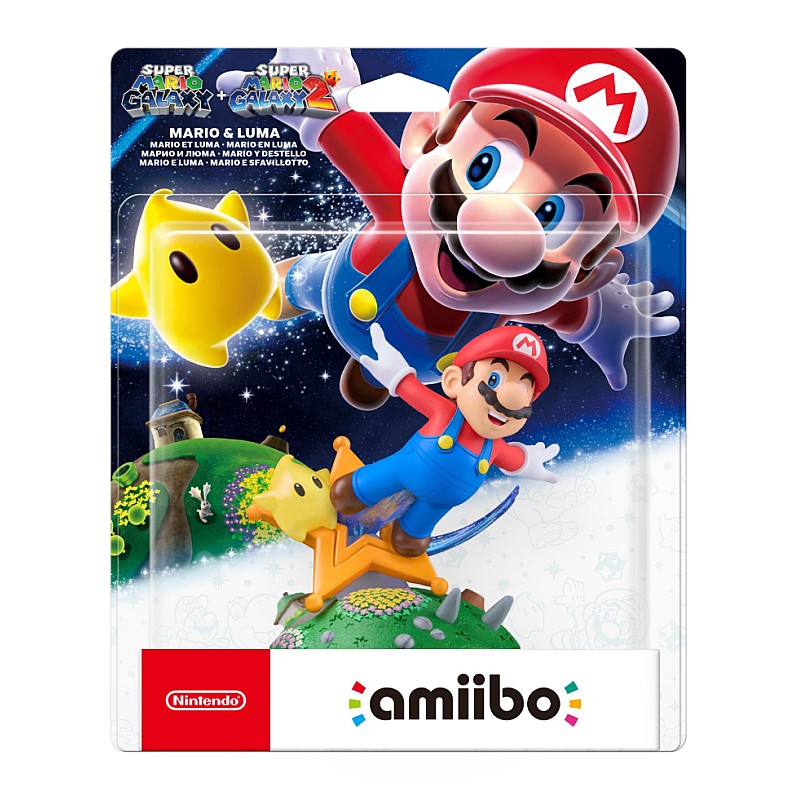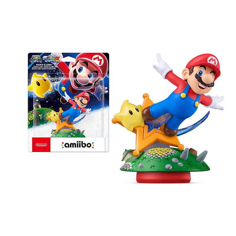 Aceasta figurina amiibo este mai mare decat dimensiunea standard si il prezinta pe Mario zburand in spatiu, cu un companion Luma care il urmeaza indeaproape.