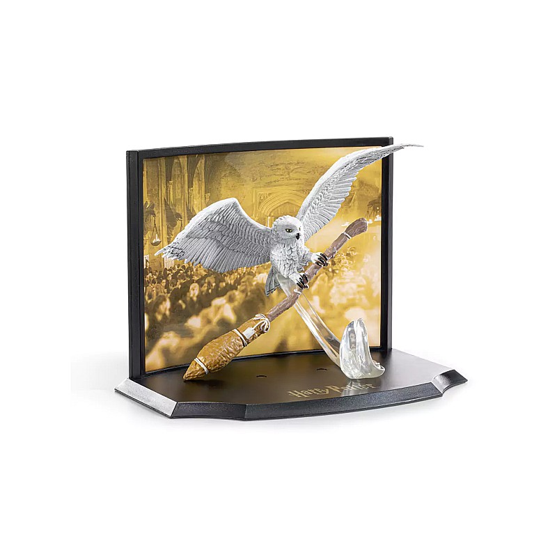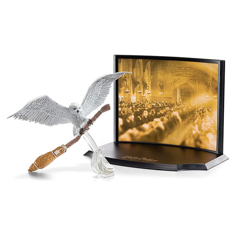 Figurina reproduce cu precizie aspectul lui Hedwig din filme, cu pene albe pufoase și privirea sa pătrunzătoare.