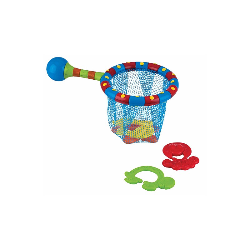 Include patru personaje distractive (un pește, caracatiță, țestoasă și stea de mare) care pot fi legate între ele sau pentru a prinde în plasă.
