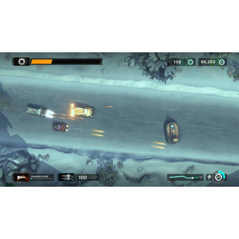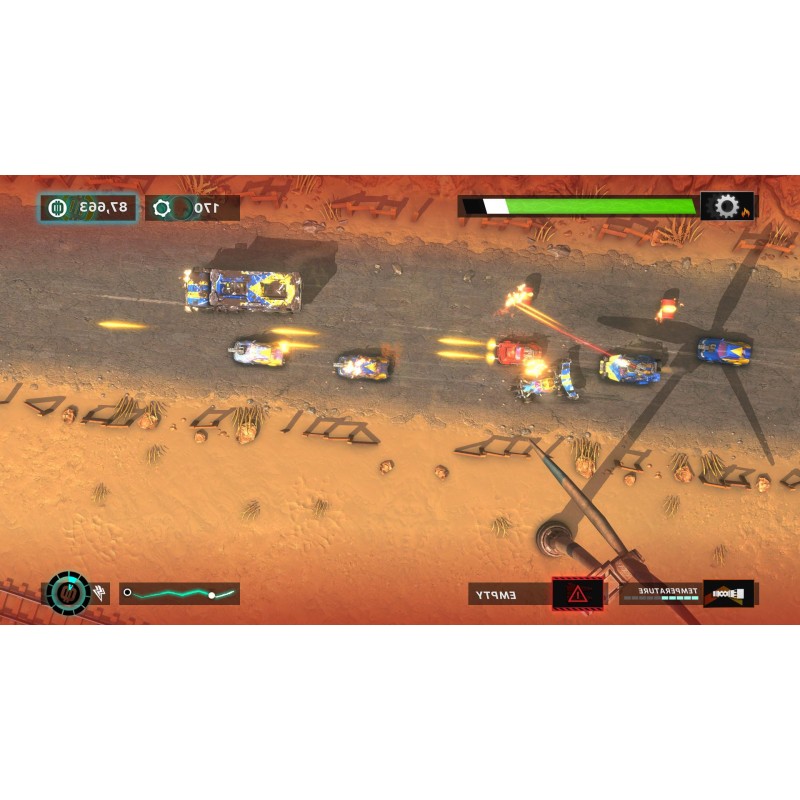 Un joc de acțiune arcade de tip shoot-'em-up rogue-lite. Conduceți, derivați, rotiți, spargeți și trageți prin valuri de vehicule inamice.