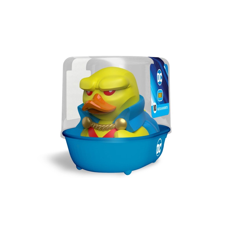 Martian Manhunter este prezentat într-o formă de rață adorabilă, păstrând toate trăsăturile emblematice ale eroului. Pielea verde iconică a marțianului.