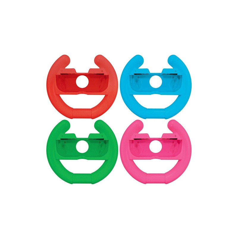 Volanele roșu, albastru, roz și verde fac ușor de identificat care controler aparține fiecărui jucător.