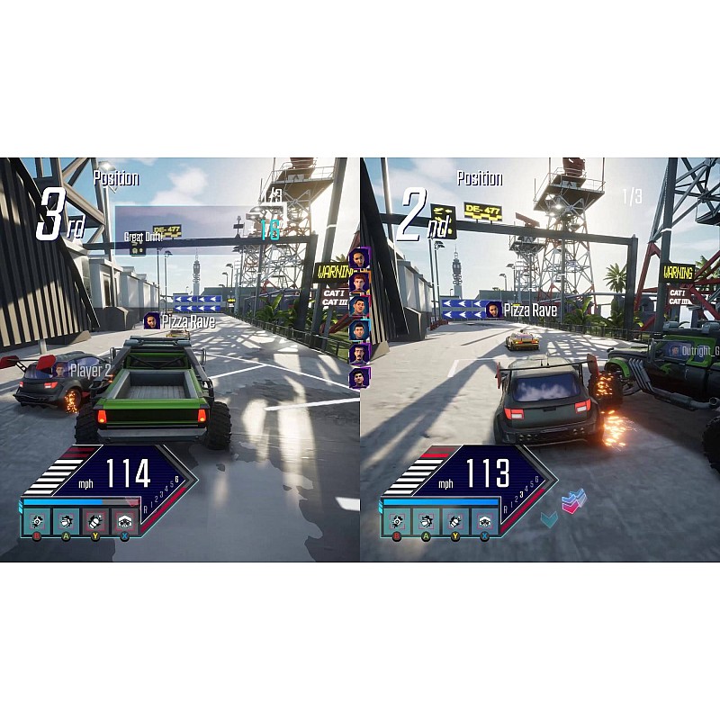 Personalizează-ți mașina cu skin-uri unice și deblochează obiecte noi în joc. Concurează în modul cooperativ cu un prieten sau joacă online cu până la 5 alți jucători.