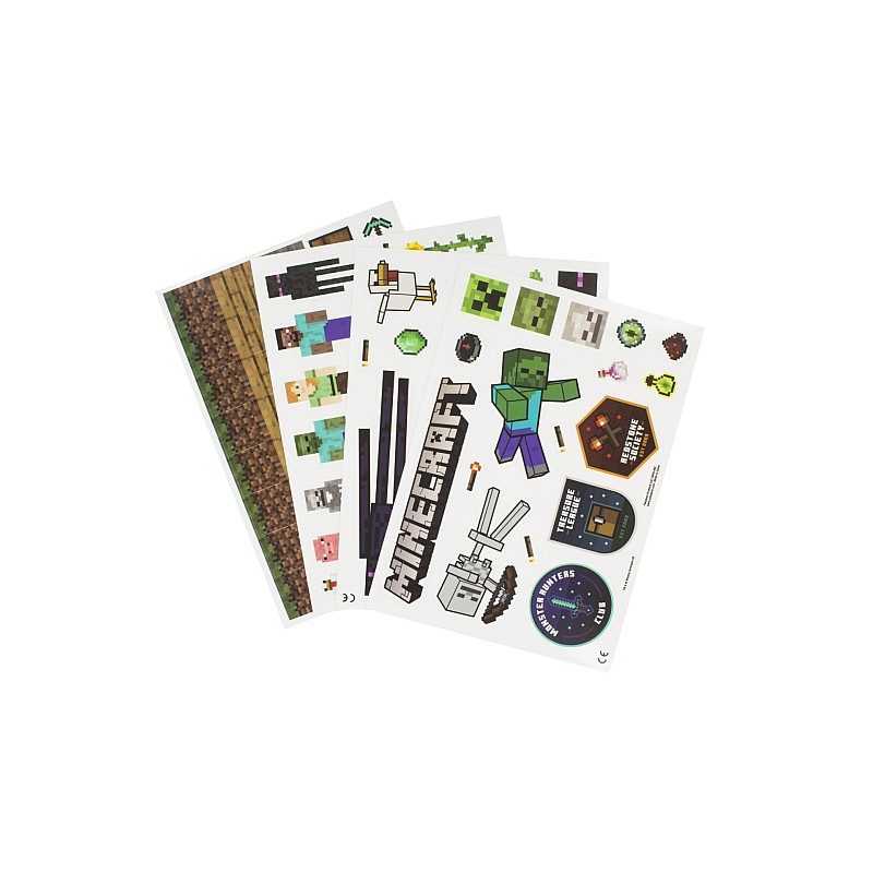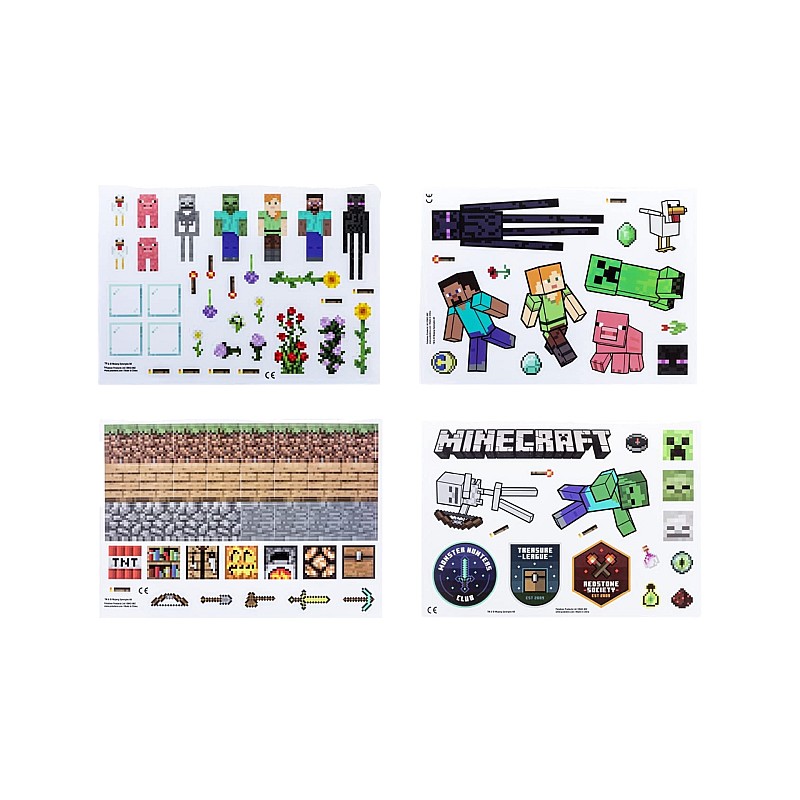 Autocolante reutilizabile: Acest pachet de autocolante Gadget Minecraft cu licență oficială conține 4 foi separate cu autocolante de diferite dimensiuni și modele.