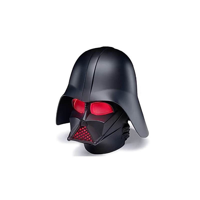 Această lampă de colecție Star Wars are forma coifului negru al lui Sith, care strălucește în roșu din interior și are sunetul oficial de respirație al lui Vader însuși.