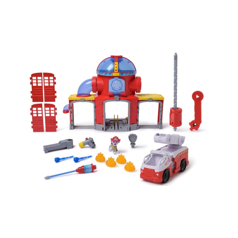 Cu o înălțime de 38,1 cm, acesta este dotat cu funcții precum lumini și efecte sonore, care dau viață acțiunii din serial. Marshall și mașina lui de pompieri sunt gata să facă față oricărei aventuri.