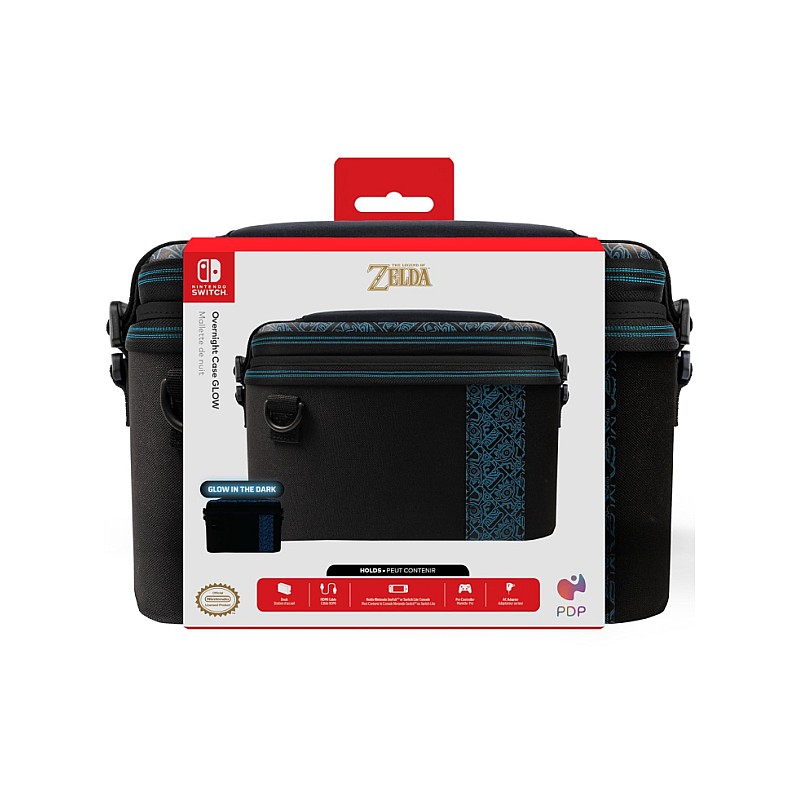 PDP Overnight GLOW Case Sheikah Shoot (Pull-n-Go) pentru Nintendo Switch este o husă de transport premium, licențiată oficial de Nintendo, creată pentru a proteja consola Nintendo Switch și accesoriile acesteia într-un mod elegant și sigur.