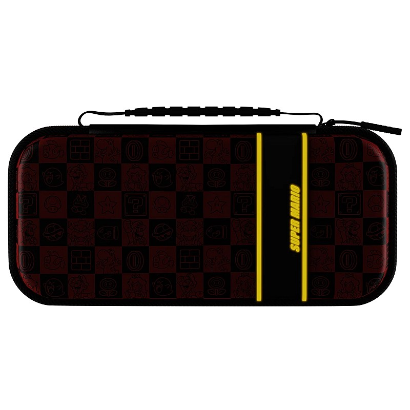 PDP Travel Case Plus GLOW Super Icon - Nintendo Switch este o husă de protecție premium, special concepută pentru a păstra consola Nintendo Switch în siguranță în timpul călătoriilor, având un design modern și iluminat care atrage atenția.