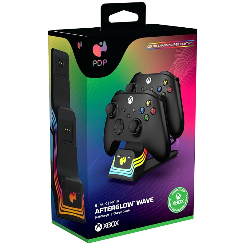 Faceți valuri cu culorile și efectele vibrante ale Black Afterglow Wave Dual Charger pentru Xbox.