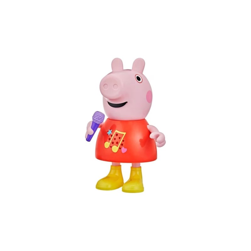 Când copiii ridică microfonul lui Peppa și îi mișcă celălalt braț, această jucărie muzicală cântă 4 cântece diferite, inclusiv tema muzicală Peppa Pig.
