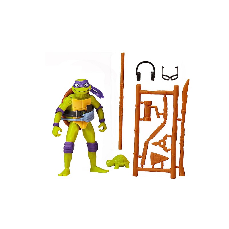 Donnie are 12 poziții pozabile pentru poziții de luptă impresionante, pline de acțiune. Donnie este gata de luptă cu bastonul său iconic bo, un suport de arme cu diverse accesorii și un pui de broască țestoasă.