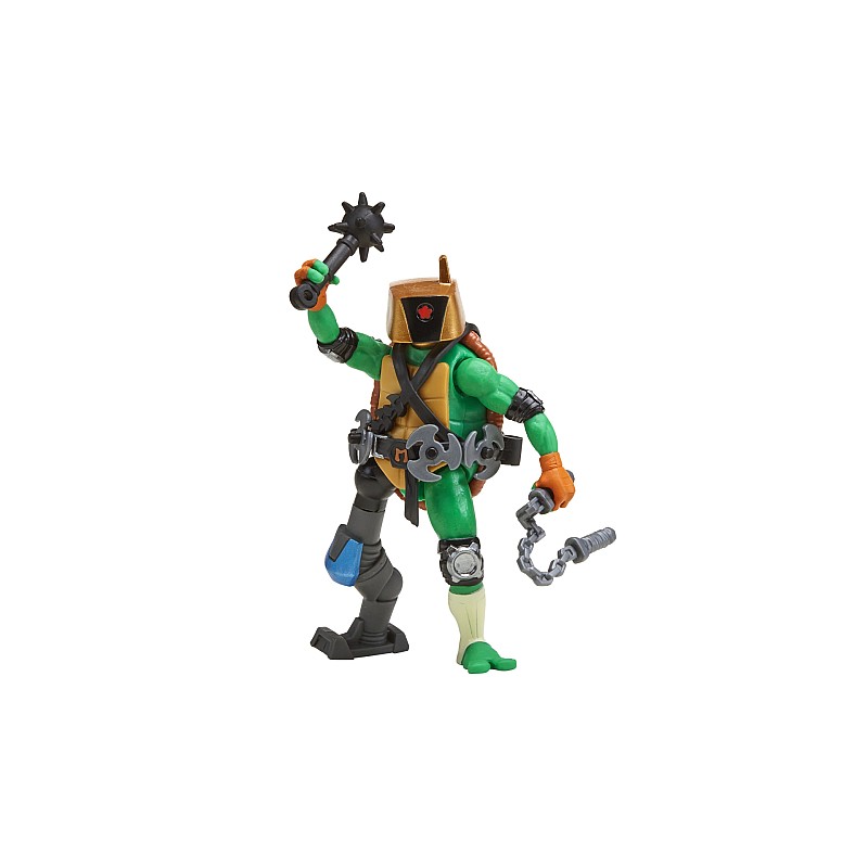 Figurina Michelangelo Mix N Match include capul lui Mechazoid, brațul drept al lui Bishop și armele iconice ale lui Mike pentru o personalizare nesfârșită.