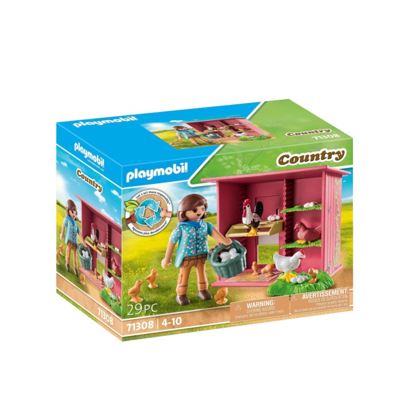 Setul include coteț, o figurină, trei găini, șase pui și ouă.