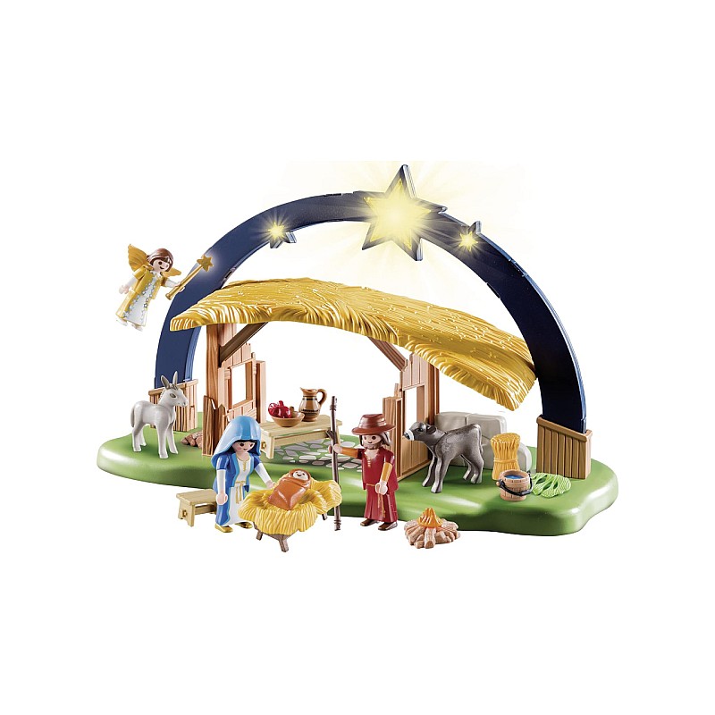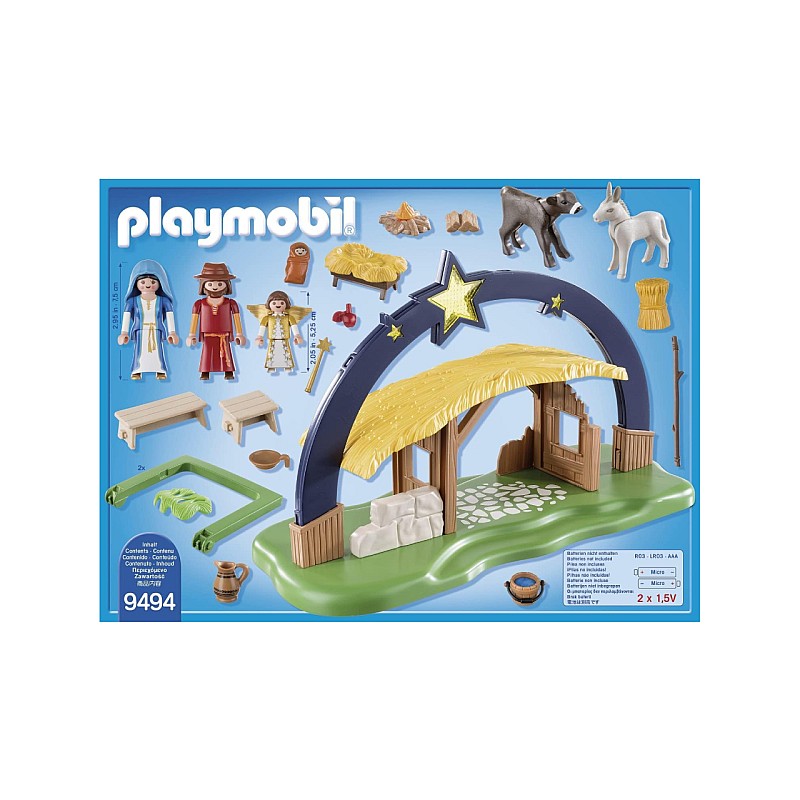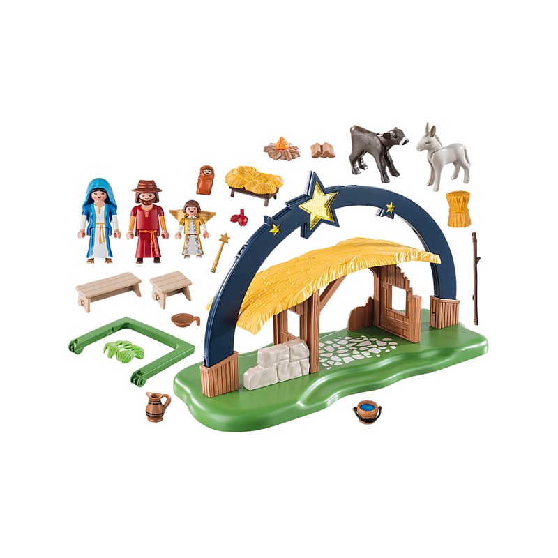 Picioarele pliabile pot fi folosite în scopuri de afișare. Include figurinele Playmobil: Maria, Iosif și copilul Iisus.
