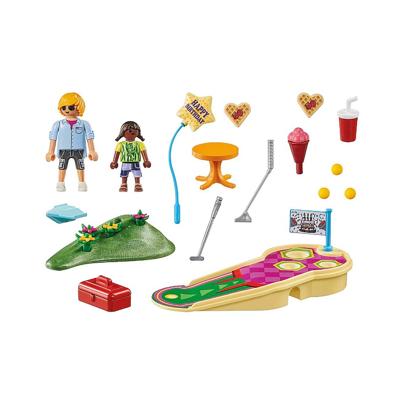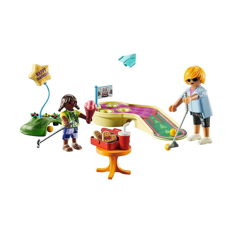 Între rundele incitante de mini golf, jucătorii de golf se răsfață cu delicioase inimioare de napolitane și înghețată delicioasă.