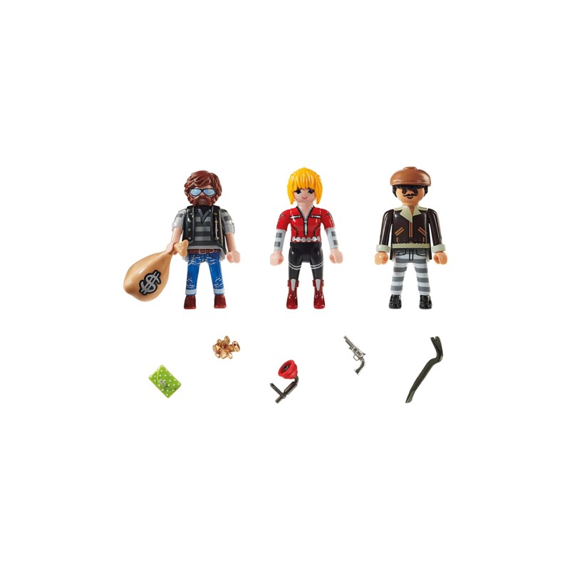 Acțiune palpitantă pentru fanii poliției: Setul de figurine PLAYMOBIL Thief Figure cu 3 hoți și accesorii pentru reconstituiri detaliate.