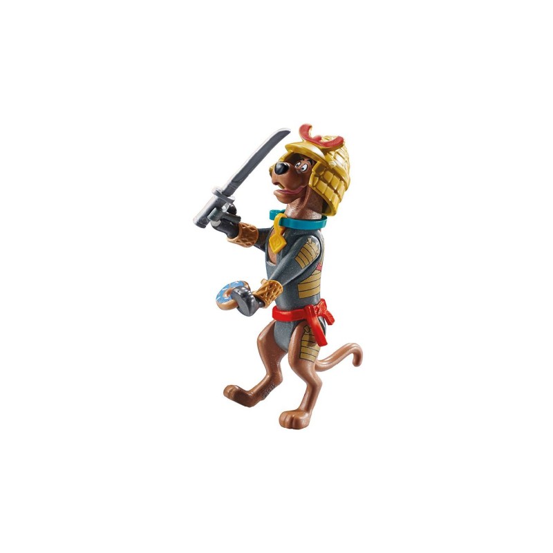 Micul set Playmobil SCOOBY-DOO! cu un total de 12 piese care se combină pentru a forma o figurină Scooby-Do Samurai cu accesorii care este un obiect de colecție.