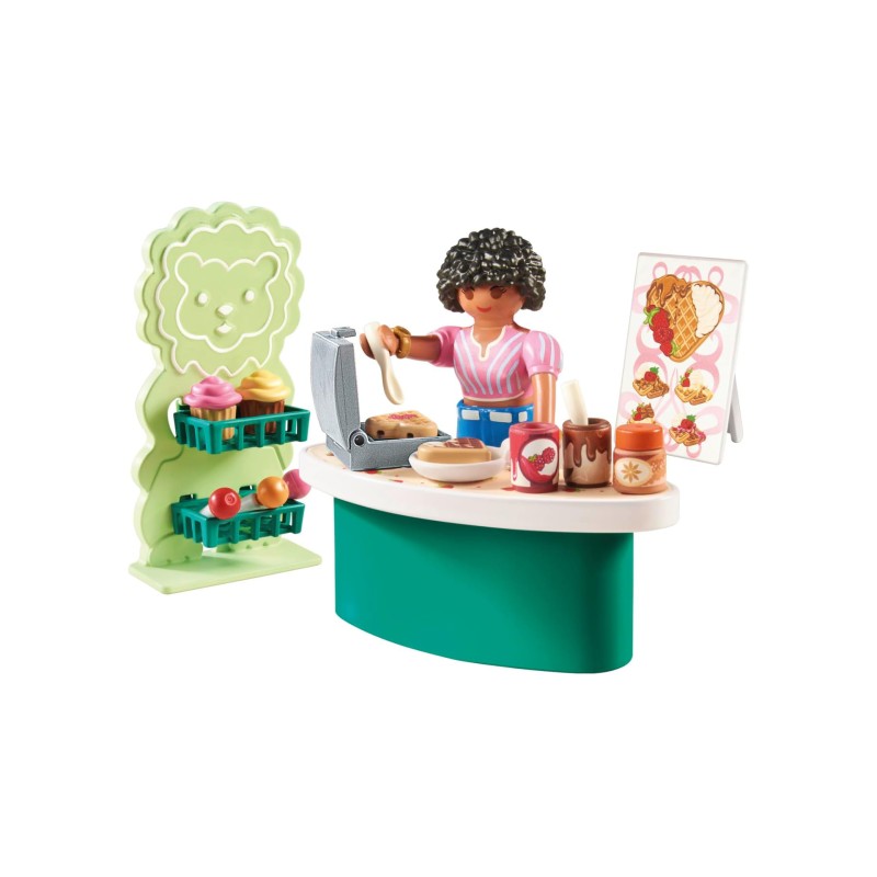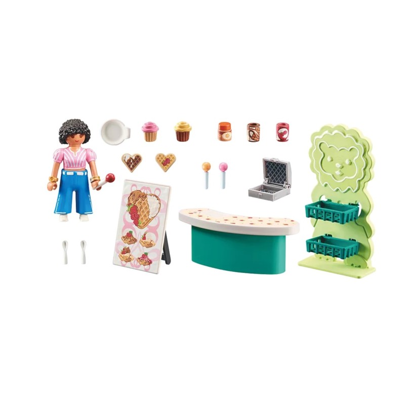 Playmobil Sweets Stand este un set de joacă adorabil și detaliat, care aduce farmecul și bucuria unei tarabe cu dulciuri în lumea Playmobil.