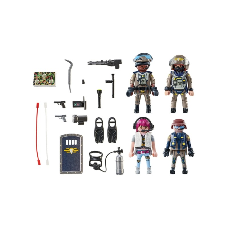 Unitatea tactică - Setul de figurine include un scafandru al unității tactice, un ofițer al grupului operativ, un coordonator de operațiuni care coordonează misiunile, precum și un escroc.