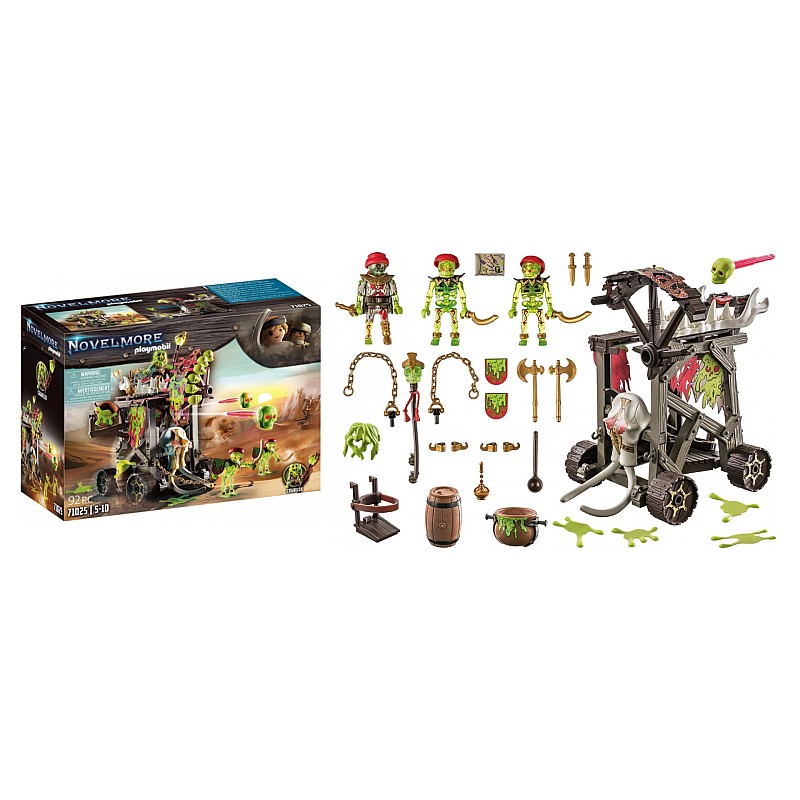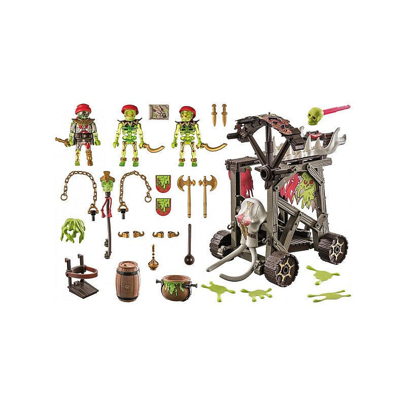 Include: 3 figurine schelet; un vehicul, 8 gloanțe de șurub, 4 plasturi de slime, 2 lanțuri, 2 topoare si multe alte accesorii.
