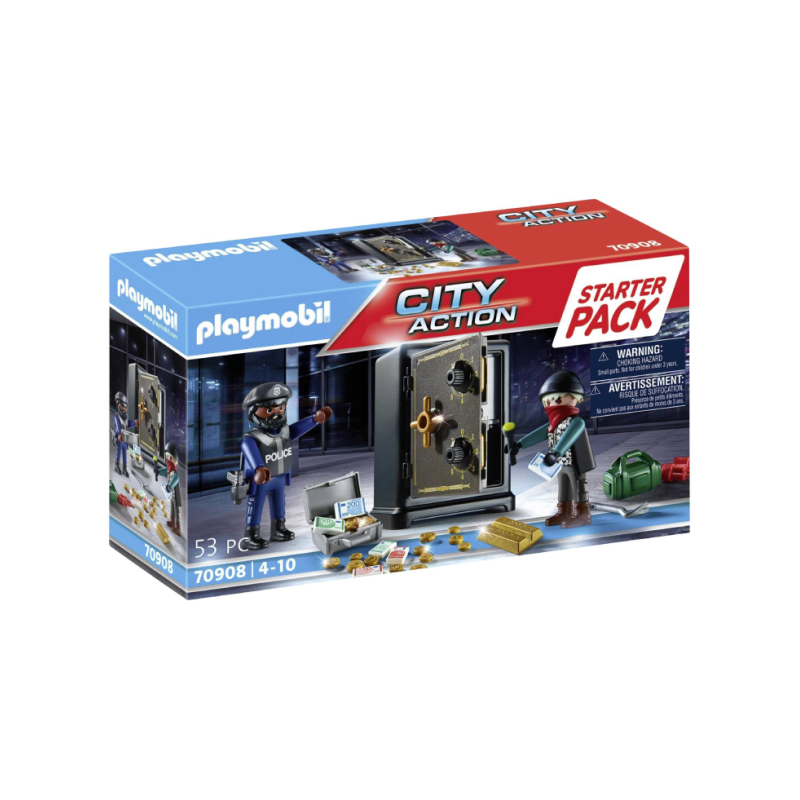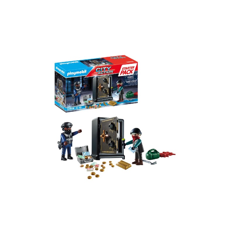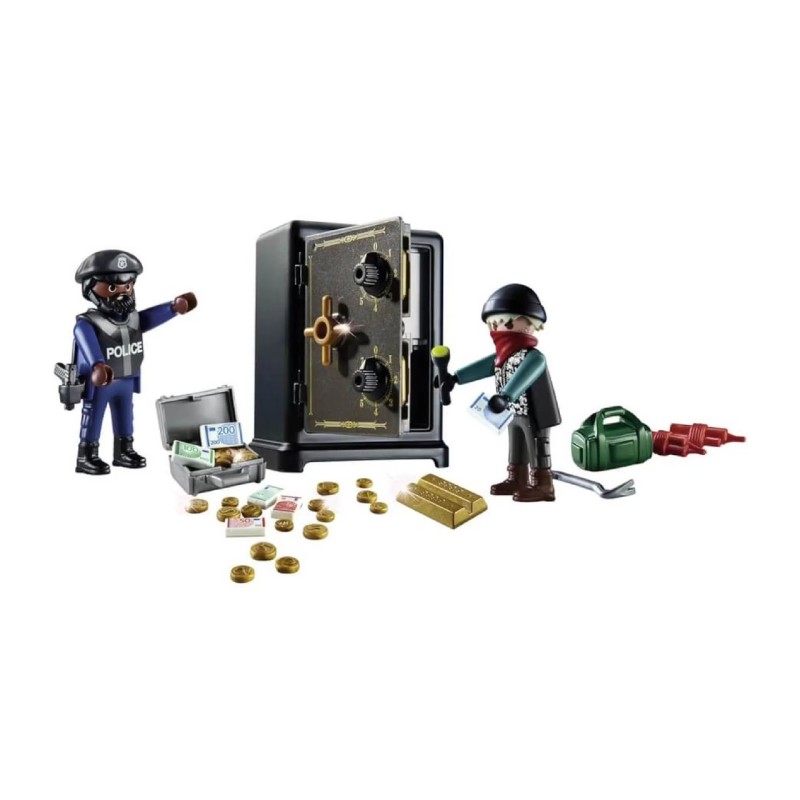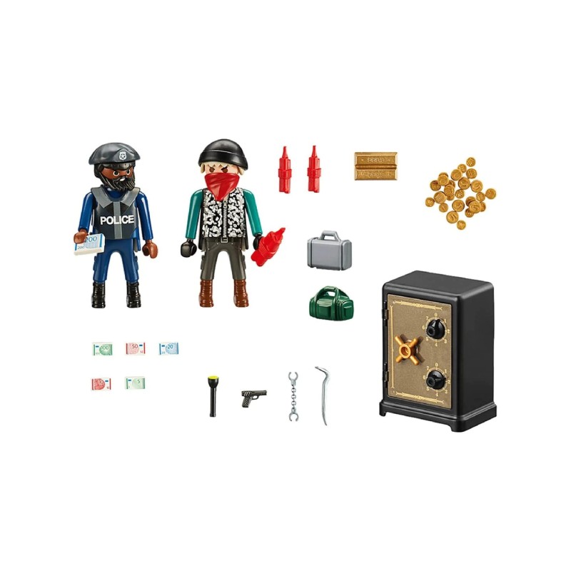 Setul include un ofițer de poliție și un hoț, un seif, lingouri de aur, un cufăr cu bani, două pachete de dinamită, o rangă și multe alte accesorii.