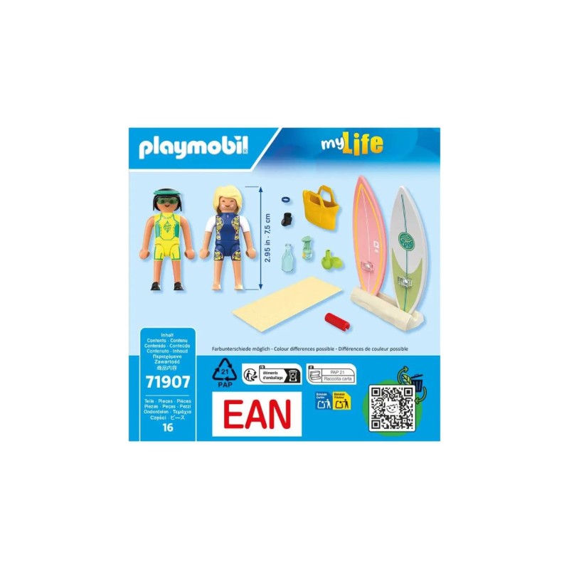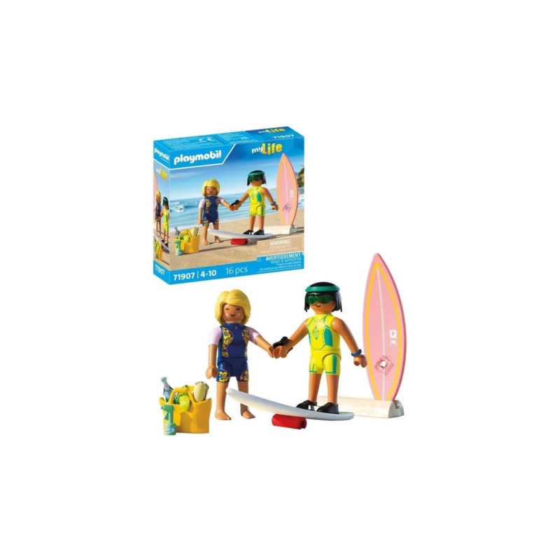Acest set de joacă detaliat PLAYMOBIL este perfect pentru copiii iubitori de valuri, gata să se arunce în distracția creativă a jocului de rol pe plajă.