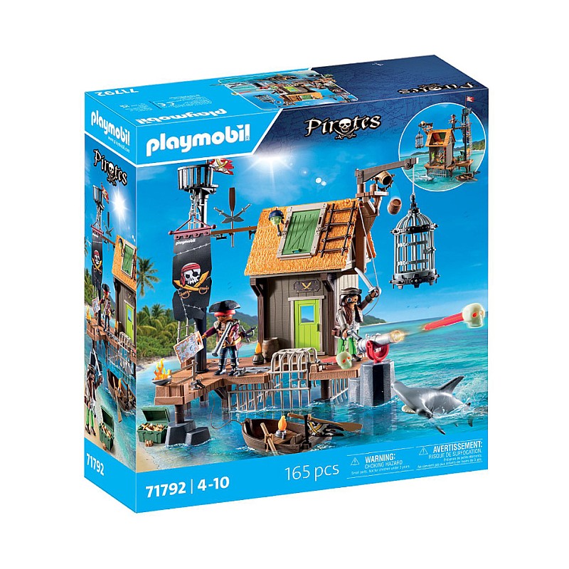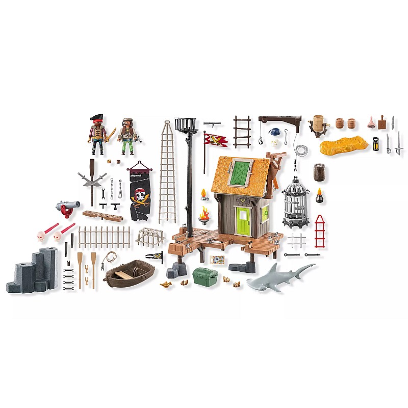 Cu fortificații solide, un turn de veghe și un ponton de lemn unde se pregătesc navele pentru aventură, acest set aduce la viață lumea captivantă a piraților.