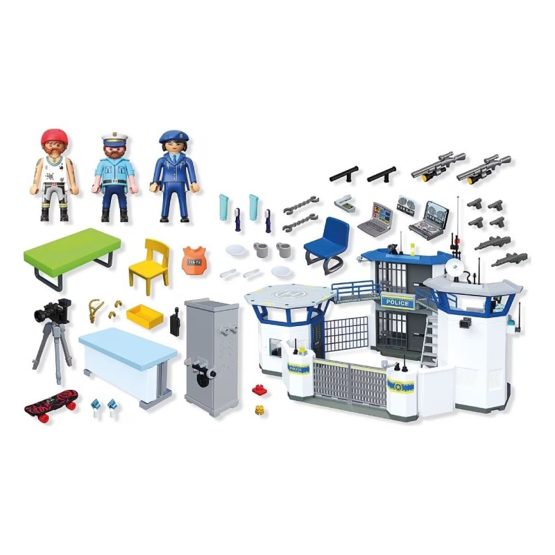 Urmărirea începe la Centrul de Comandă al Poliției! Atenție, infractori - ofițerii sunt pregătiți cu scanere de amprente (incluse folii transparente), un dulap de arme care se încuie și chiar uniforme de condamnați pentru a-i echipa pe suspecți.