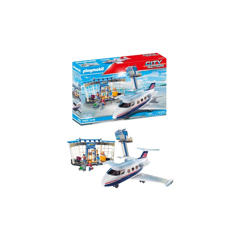 Playmobil Airport with Airplane and Control Tower (71153) este un set spectaculos pentru micii pasionați de avioane și călătorii.